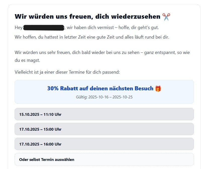 Bringt Stammkund:innen zurück, bevor Lücken im Kalender entstehen.