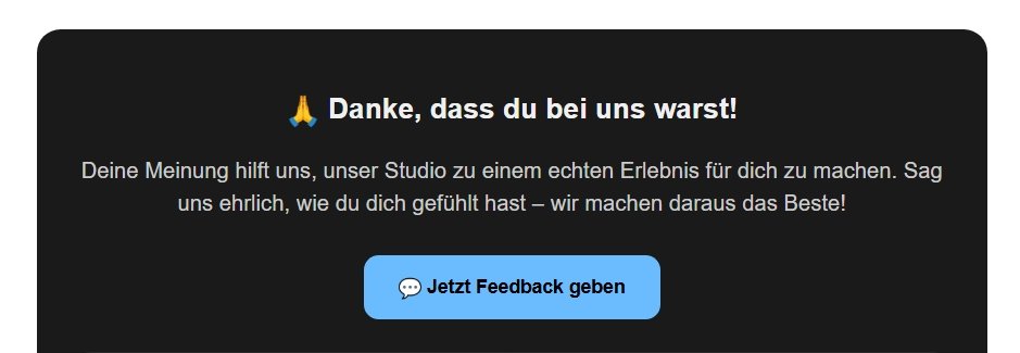 Kurz erklärt: Damit Sie kein Spam bekommen, ist dieser Bereich gesperrt. 72 Stunden nach dem Termin erhält der Kunde eine E-Mail, wird um eine Rezension gebeten und über den Link auf Ihre Website geführt. In der E-Mail ist ein „Schlüssel“ – damit öffnet sich das Formular.