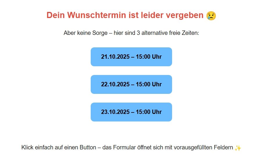Workflow sucht 3 freie Zeiten nah am Wunschtermin des Kunden, auf verschiedenen Tagen (für mehr Auswahl).